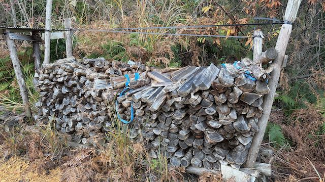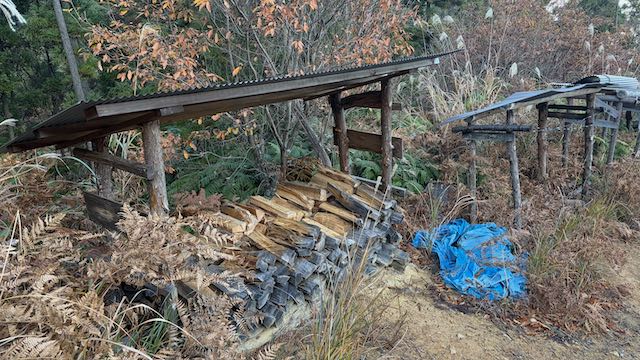 さらに、むかーし、この山に来たばかりの頃に、生えていた杉やヒノキを大量に伐採して「薪割り体験」なんかをやって、大量に割った薪がある。